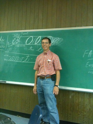 Don doing what he likes best – Teaching Cursive